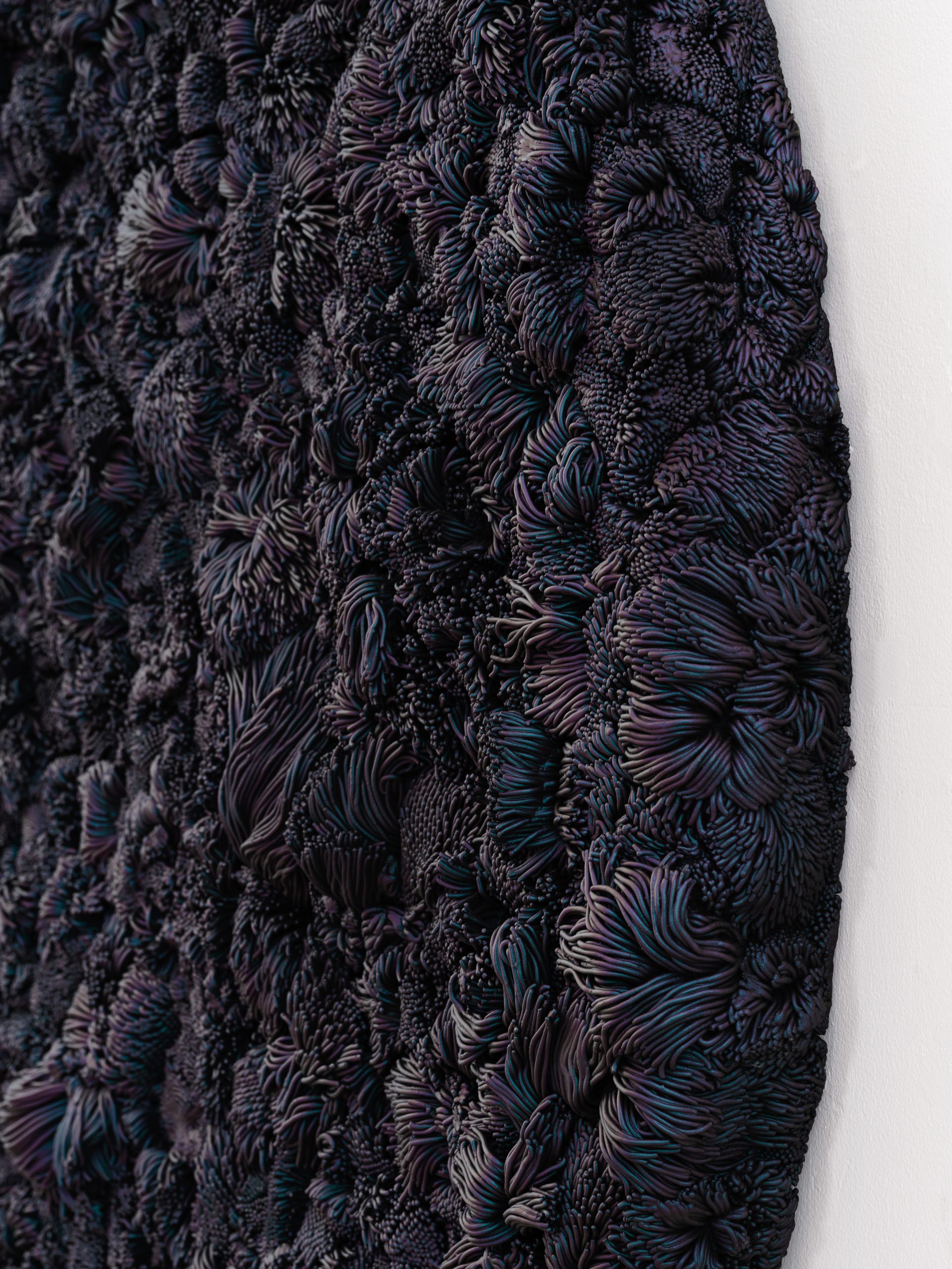 Since the beginning of her career Pae White has explored a variety of materials and techniques, formal elements being a central focus of her artistic production. Among her most iconic artworks we can mention her tapestries, mobiles, chandeliers, thread installations, neon installations. Her research develops with the study of different materials as aluminum, ceramic, clay, glass, marble, paper, porcelain and steel.