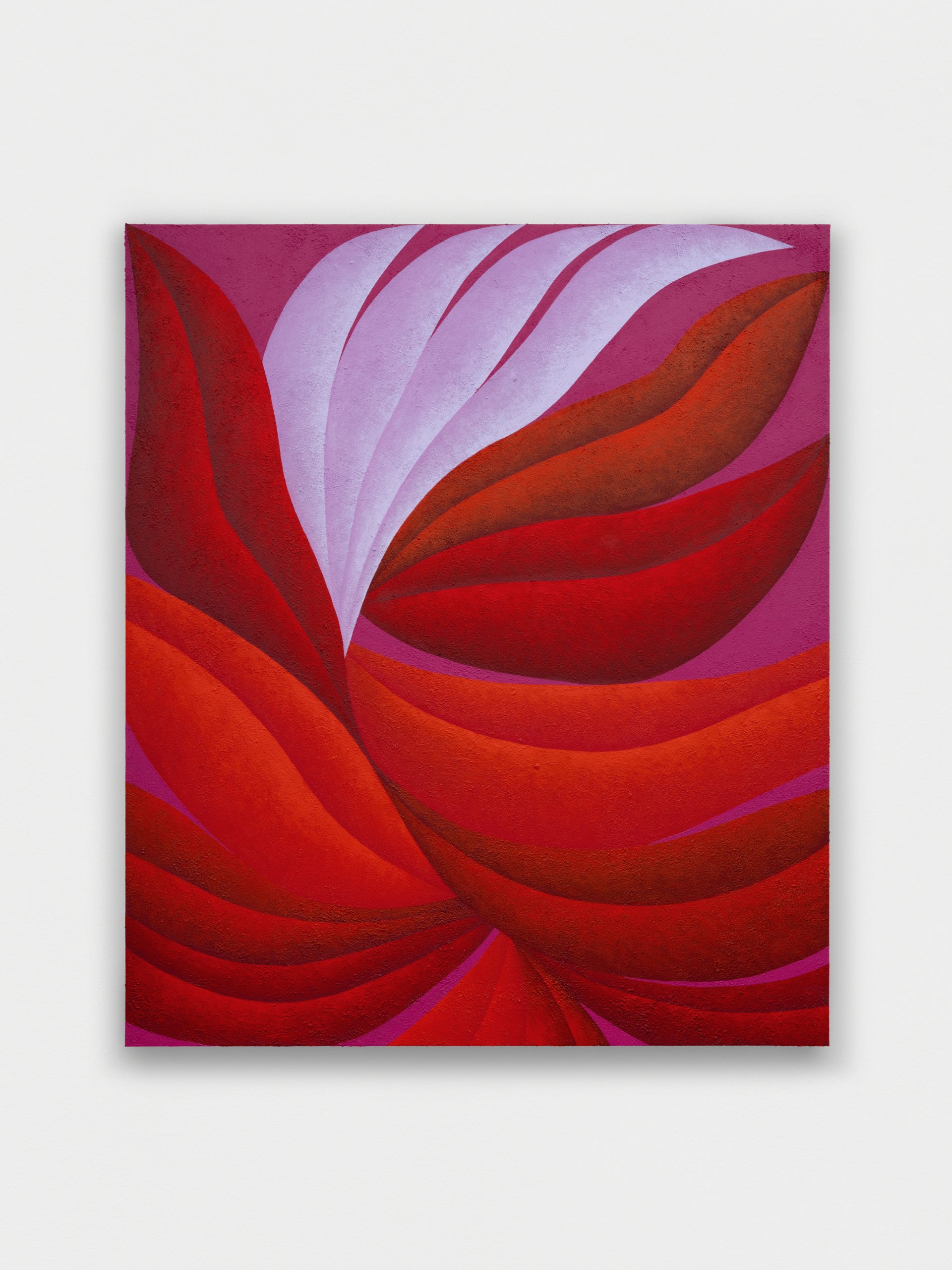 Corydon Cowansage’s disembodied forms evoke a sense of discomfort, stimulation, buoyancy, the maternal, and the sublime. Her fibrous shapes are suspended within the frame, forming a harnessed restraint that interacts with the wavy and bent bodies, as they come to a sharp, tantalizing point. There is a moment of pain, both uncomfortable and awkward, as plump, fleshy forms contort themselves into configurations or stretch out to just barely graze each other’s tingling tips. These articulations of structures sometimes find themselves duplicated, whether by a conscious decision or complete coincidence. The viewer is only allotted a particular crop of this vision, generating further delusions about the spatial nature of these objects, as they perpetually float and meld together within the confines of the substrate.