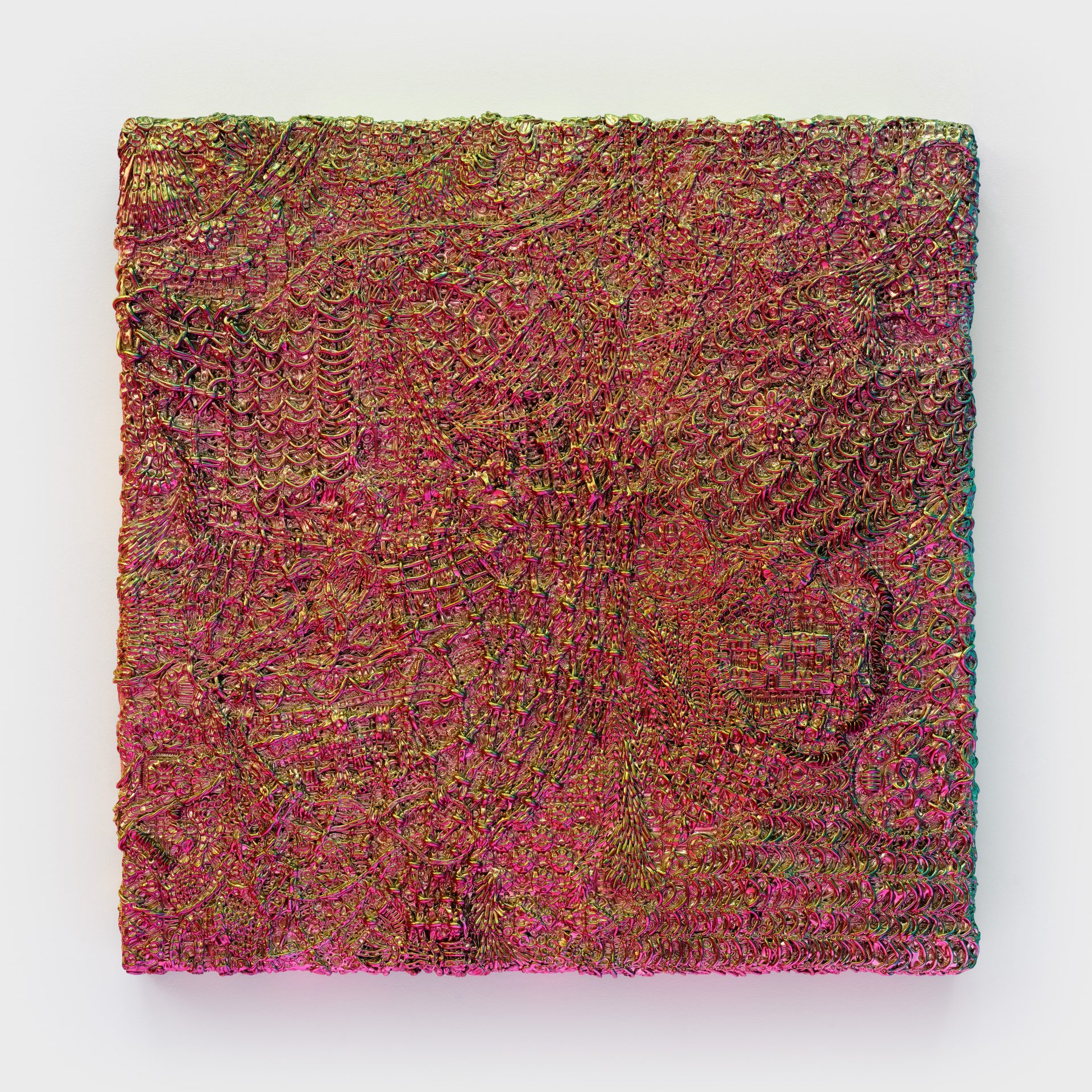 Since the beginning of her career Pae White has explored a variety of materials and techniques, formal elements being a central focus of her artistic production. Among her most iconic artworks we can mention her tapestries, mobiles, chandeliers, thread installations, neon installations. Her research develops with the study of different materials as aluminum, ceramic, clay, glass, marble, paper, porcelain and steel.