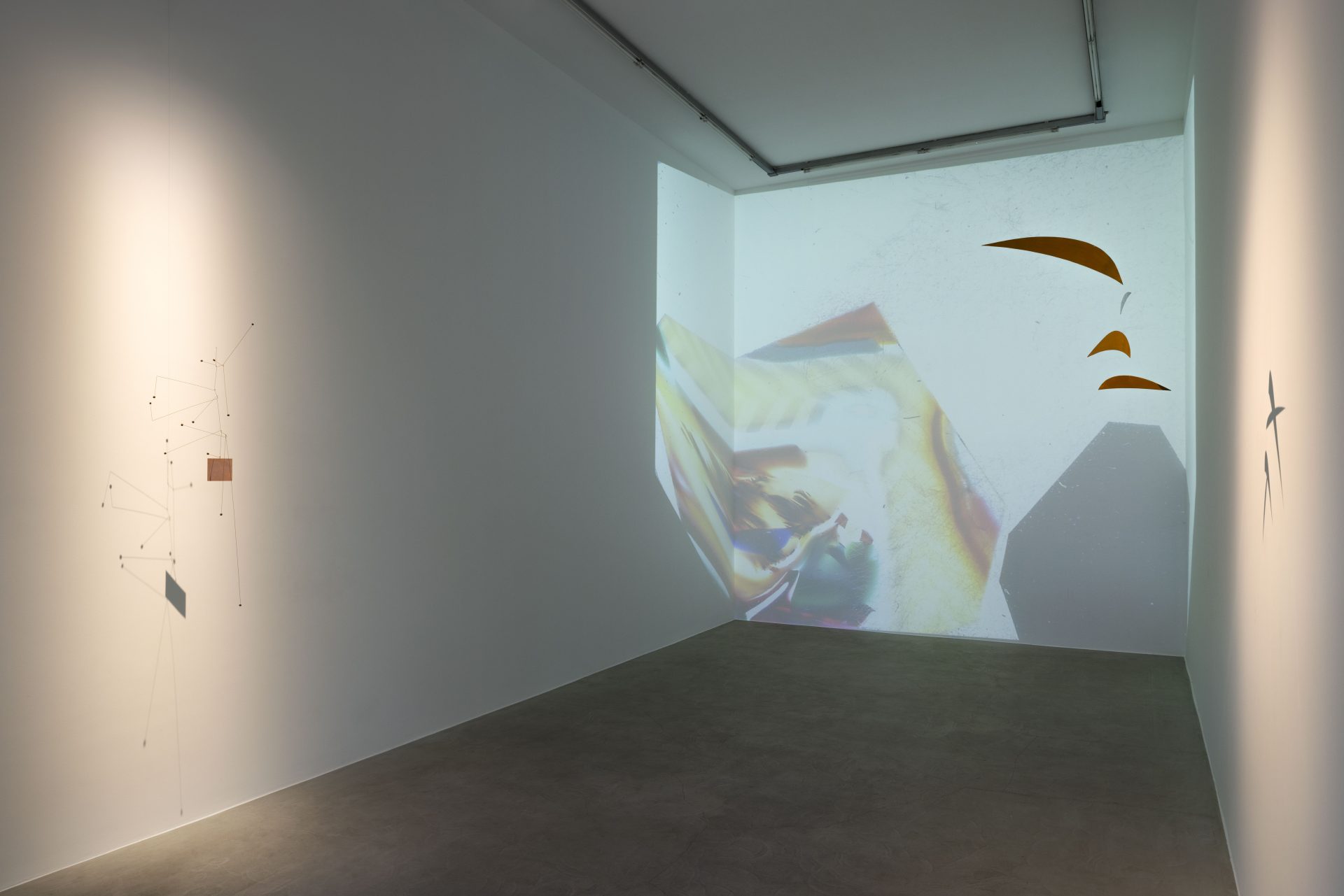 Allo stesso modo lo spazio diventa elemento cardine per le ricerche sperimentali iniziate con le composizioni proiettate, a partire da Proiezioni dirette (1950) attraverso le quali Munari realizza ambienti immersivi e spettacolari. La pittura viene realizzata con micro-composizioni di materiali di vario tipo (plastiche, cartoncino, fili di cotone, forme naturali, retini, liquidi, ai quali vengono anche applicate bruciature, graffiature, distorsioni) inserite nei telai di una diapositiva e proiettate in grandi dimensioni. Dal 1953 in poi Munari sviluppa ulteriormente l’idea, adoperando dei fogli Polaroid che consentono la scomposizione della luce, generando pitture a colori mutevoli a partire, paradossalmente, da materiale incolore e trasparente. Le Proiezioni Polarizzate e le Proiezioni Dirette in grandi dimensioni smaterializzando la pittura, consentono di “affrescare” le pareti di ambienti che risultano, di conseguenza, fortemente immersivi, anticipando molte delle video installazioni dei decenni a venire. “Il vivere moderno ci ha dato la musica in dischi: ora ci dà la pittura proiettata” [B. Munari, 1954][1].