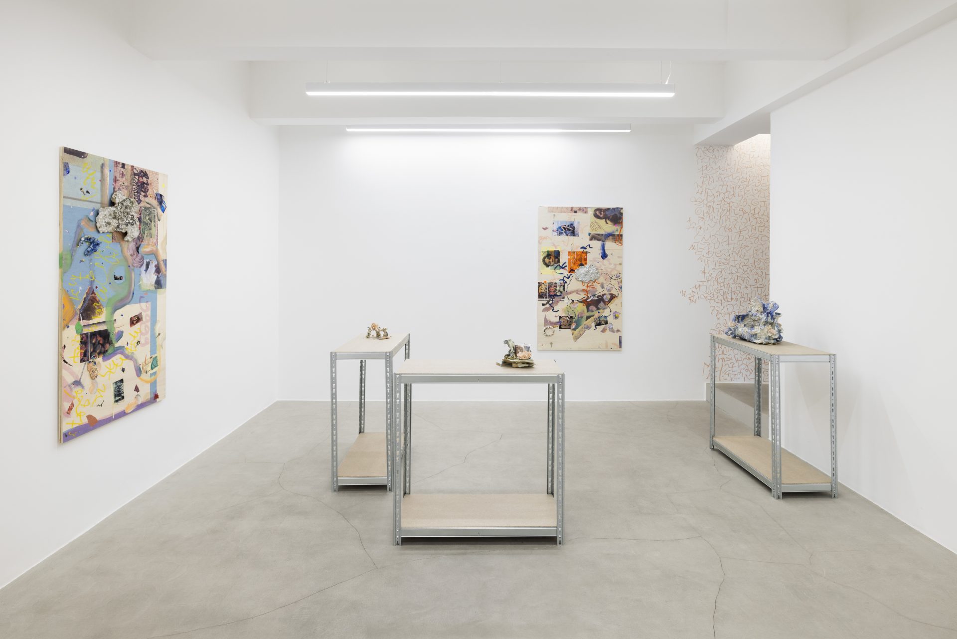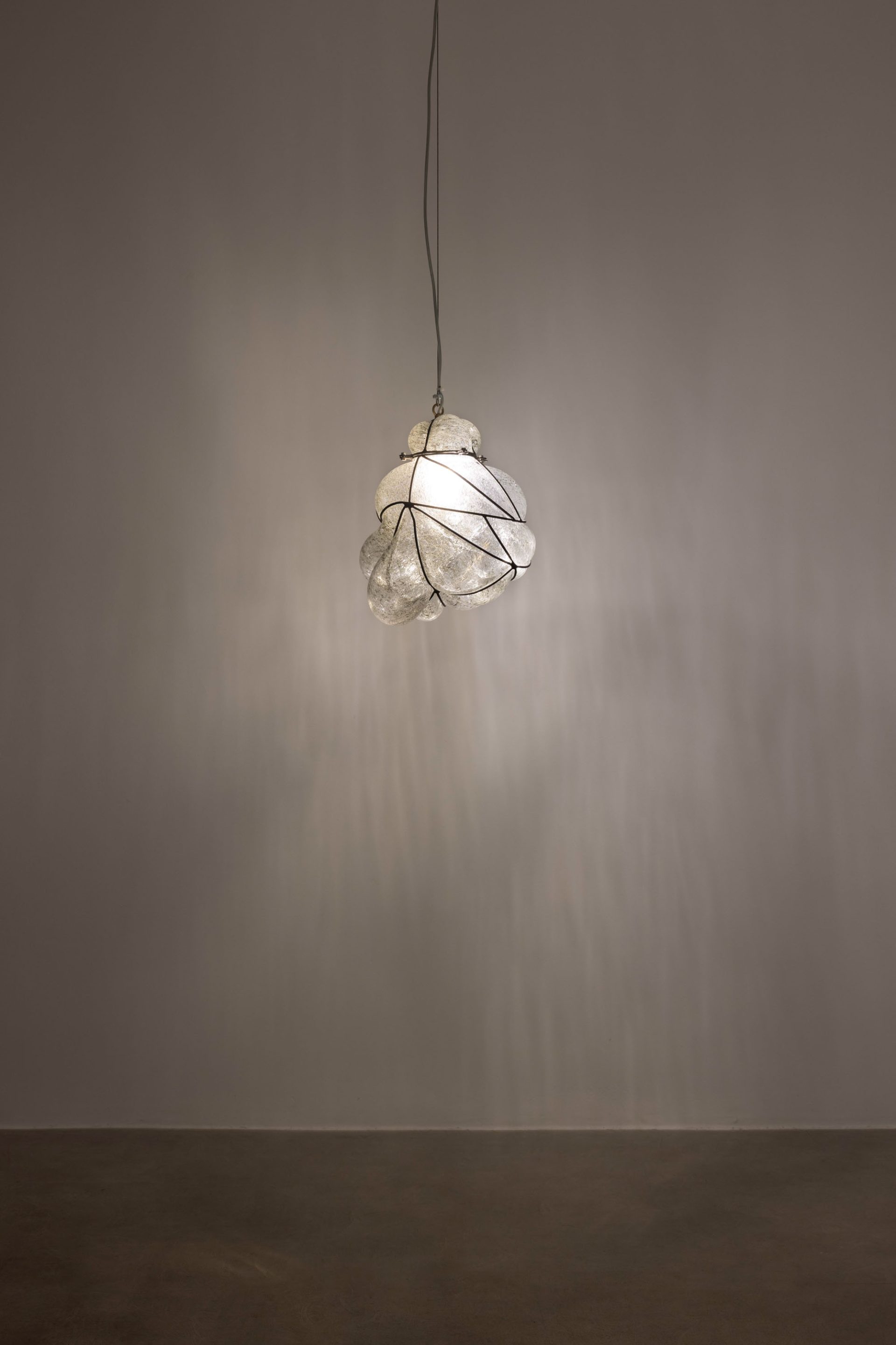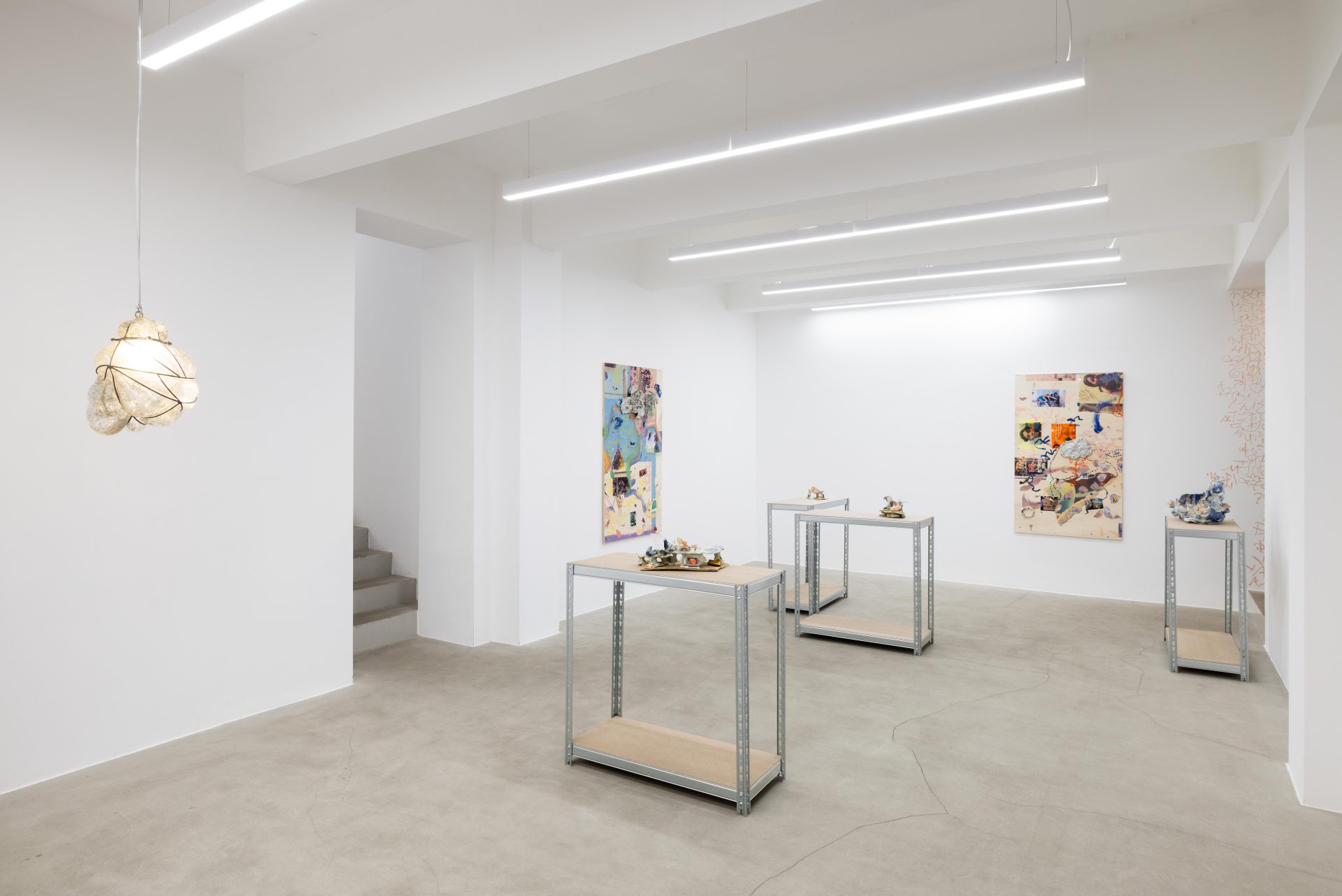 In Milan, the sequence centers on the diptych Safe Space for a Passing History – Ère du Verseau 999 (Long Story First), first presented at the Centre Pompidou in 2024 on the occasion of Choisne’s Marcel Duchamp Prize, where her installation explored astrological imaginaries as engines for rupture. The Boudoirs ceramics recur in both cities; the Milan iterations were developed during the artist’s 2025 residency at Scuola Piccola Zattere in Venice, where production was embedded in local craft networks. In the same context, Choisne collaborated with Venetian glassmakers on I hear my heart in your ear, a lamp inspired by the city’s iconic lampposts — folding neighborhood know-how, daily rhythms, and material vernacular directly into the exhibition’s meditative cadence.