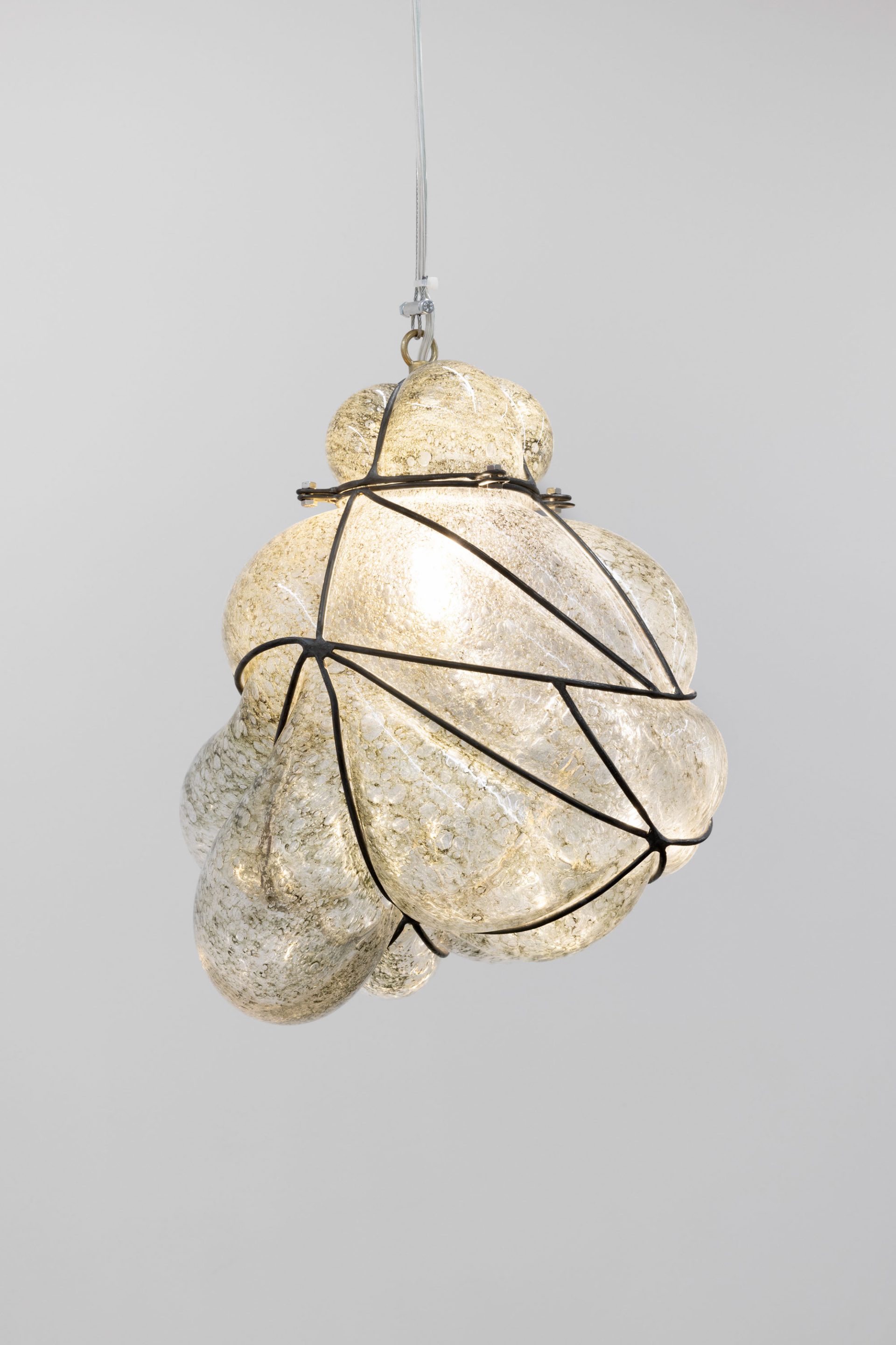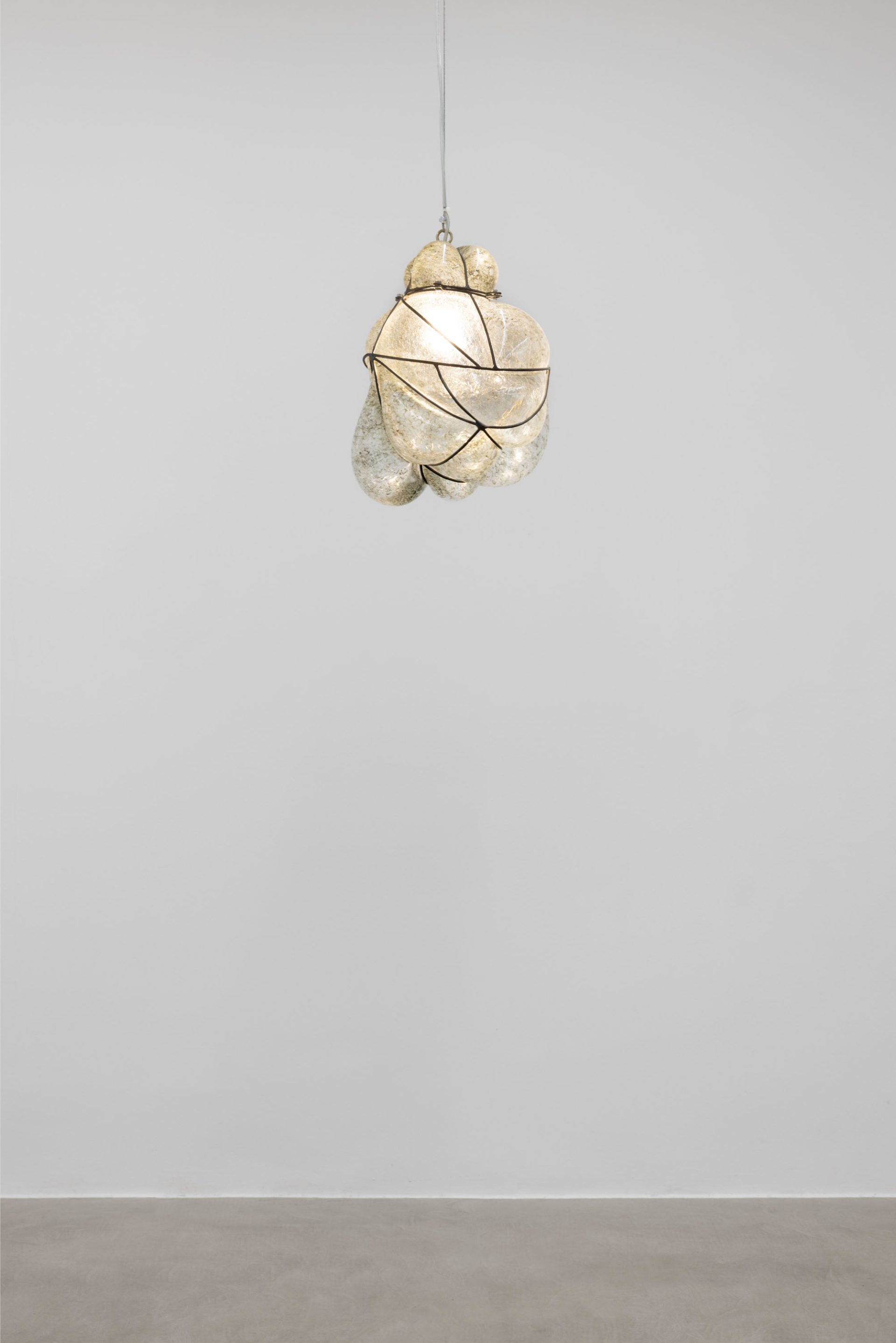In Milan, the sequence centers on the diptych Safe Space for a Passing History – Ère du Verseau 999 (Long Story First), first presented at the Centre Pompidou in 2024 on the occasion of Choisne’s Marcel Duchamp Prize, where her installation explored astrological imaginaries as engines for rupture. The Boudoirs ceramics recur in both cities; the Milan iterations were developed during the artist’s 2025 residency at Scuola Piccola Zattere in Venice, where production was embedded in local craft networks. In the same context, Choisne collaborated with Venetian glassmakers on I hear my heart in your ear, a lamp inspired by the city’s iconic lampposts — folding neighborhood know-how, daily rhythms, and material vernacular directly into the exhibition’s meditative cadence.