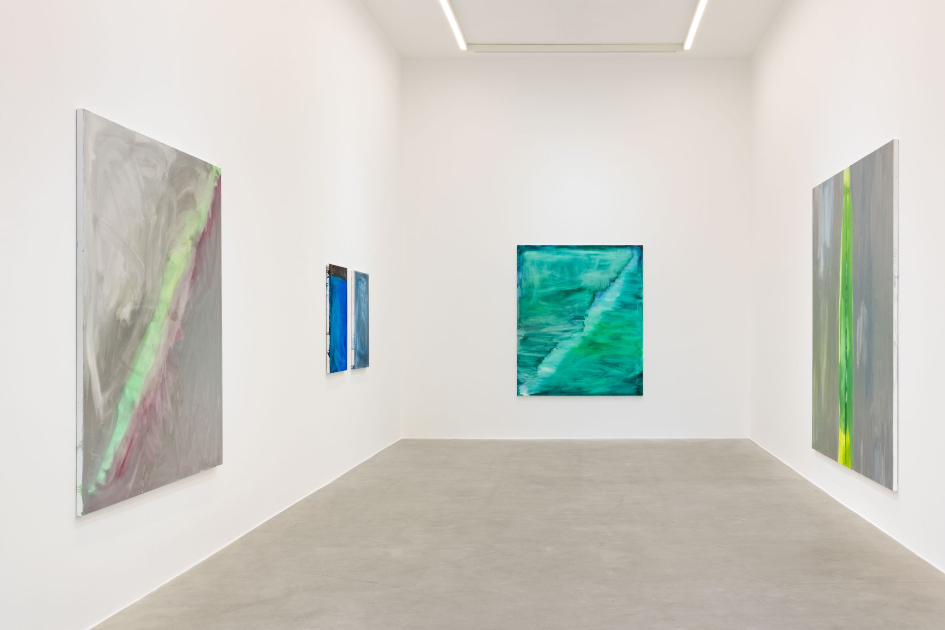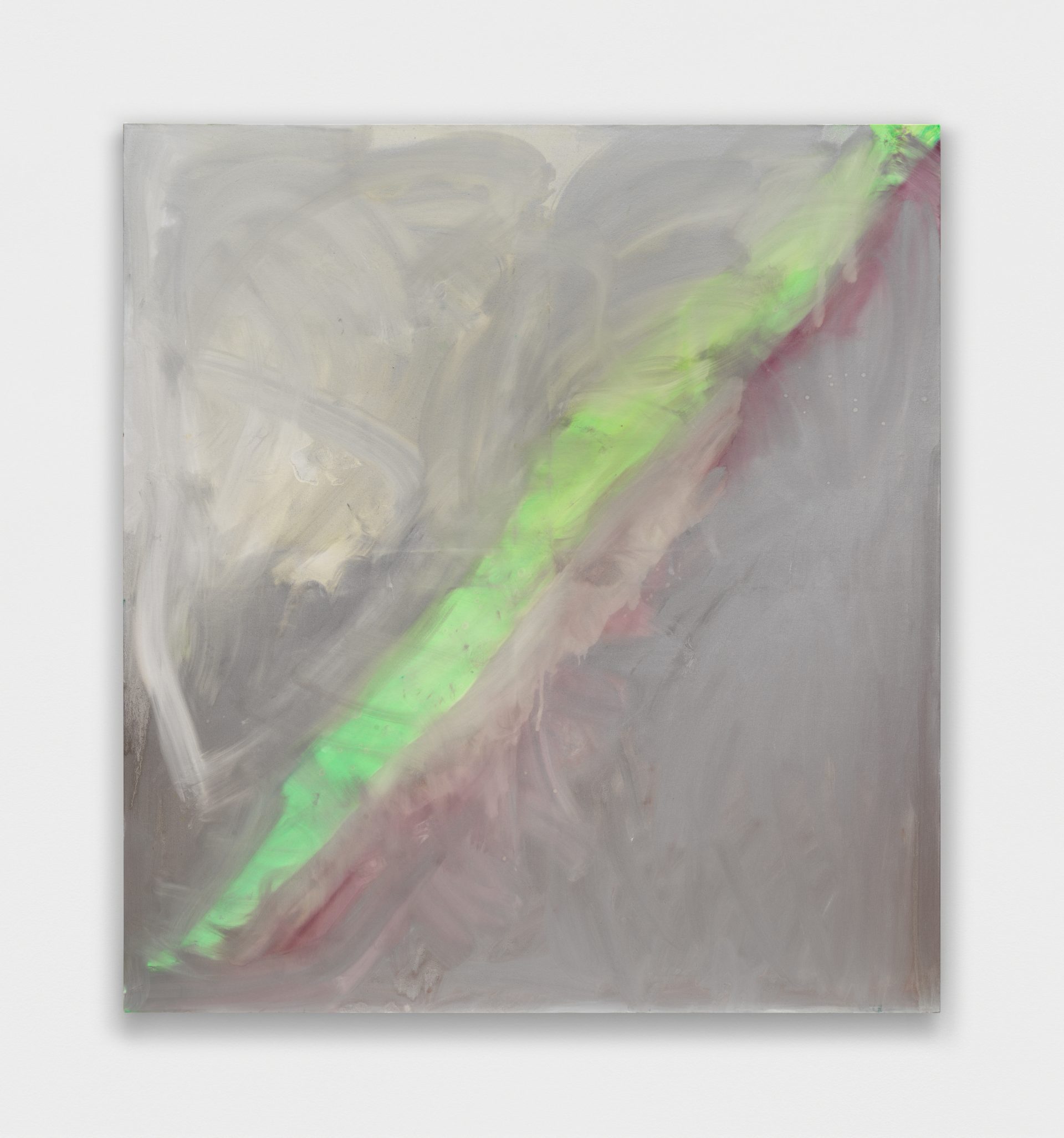 A pivotal shift occurred during the Covid period, when Jane began making what she calls her “green screen” paintings. Working constantly within this chromatic condition, the landscape gradually disappeared. Painting became fully abstract — not as a stylistic decision, but as a consequence of sustained looking and prolonged immersion. Color ceased to frame space and instead became space itself.