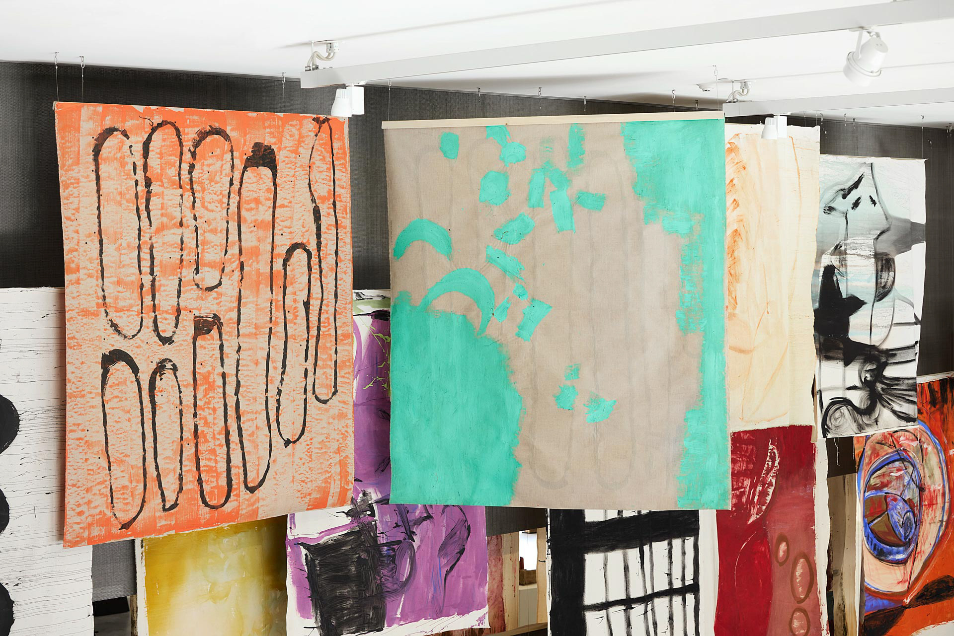 Immersing viewers in dense cascades of un-stretched canvases suspended from ceilings and walls, Vivian Suter’s colorful, gestural paintings evoke fluidity both in their application of liquid acrylics and as they slide between abstraction and representation. For Dionne Lee, water is a wilderness that holds dueling forces of safety and danger. Lee’s meditative videos and collaged photographic prints mine hidden histories. Simone Fattal’s earliest ceramic sculptures—inspired by a sculpture known as the Amorite Spring Goddess—appear with her other ceramic and cast bronze figures, charting a sinuous course through the museum into its courtyard.